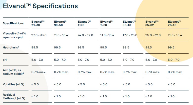 Elvanol series of PVA (such as Elvanol 75-15 Polyvinyl Alcohol) , through optimization of molecular structure and viscosity grades, allows different models to precisely match the above requirements.