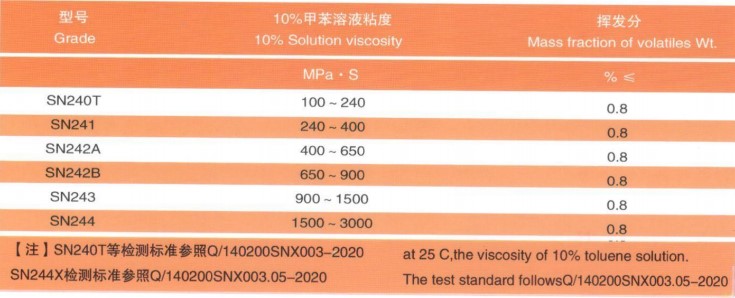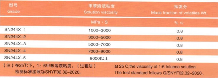 Produtos típicos como SN236T e SN237T possuem viscosidade de solução adequada e boa estabilidade, o que os torna altamente valiosos nas indústrias de calçados e adesivos industriais.
